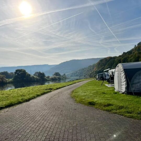 Opstaan direct aan rivier de Weser en met de prachtige zonsopgang.